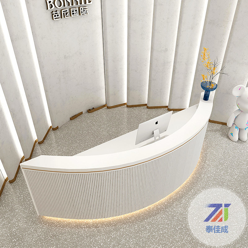 定制創(chuàng)意異形藝術(shù)玻璃鋼烤漆吧臺收銀臺大堂美容院公司前臺接待臺